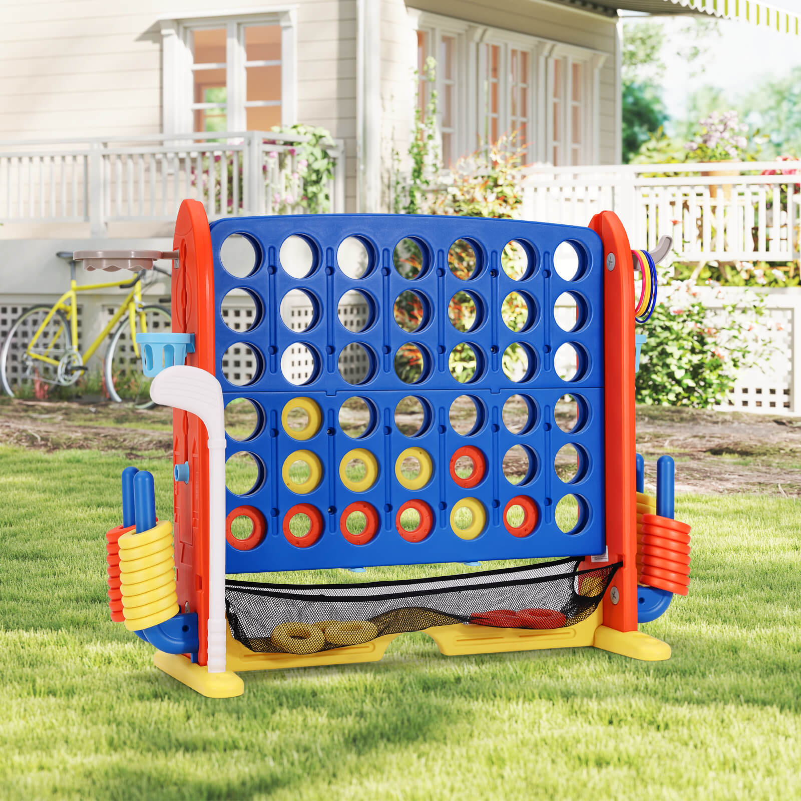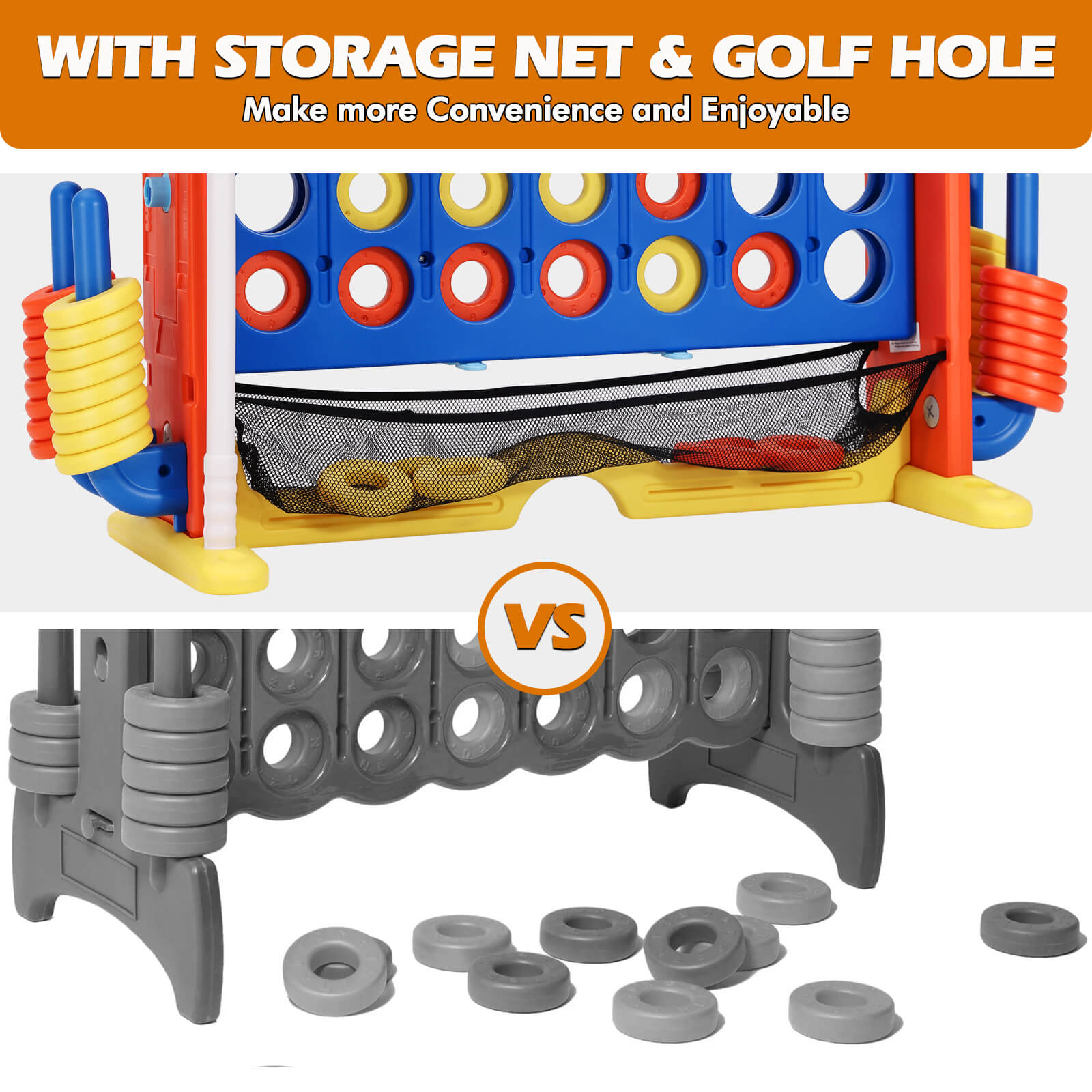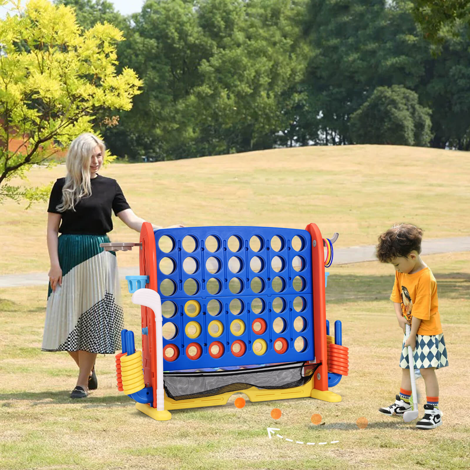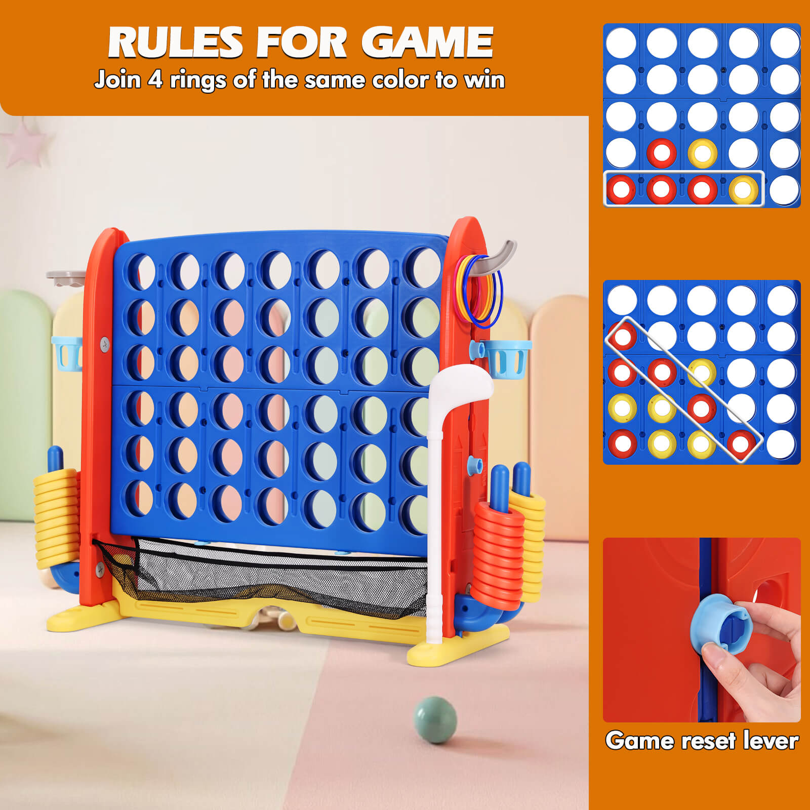 #40123 Jumbo 4-to-Score Giant Game Set, 4 in a Row Game with Ring Toss, Golf & More, 3.5FT Tall Indoor/Outdoor Connect Game with 42 Jumbo Rings & Quick-Release Slider, Holiday, Party & Family Games