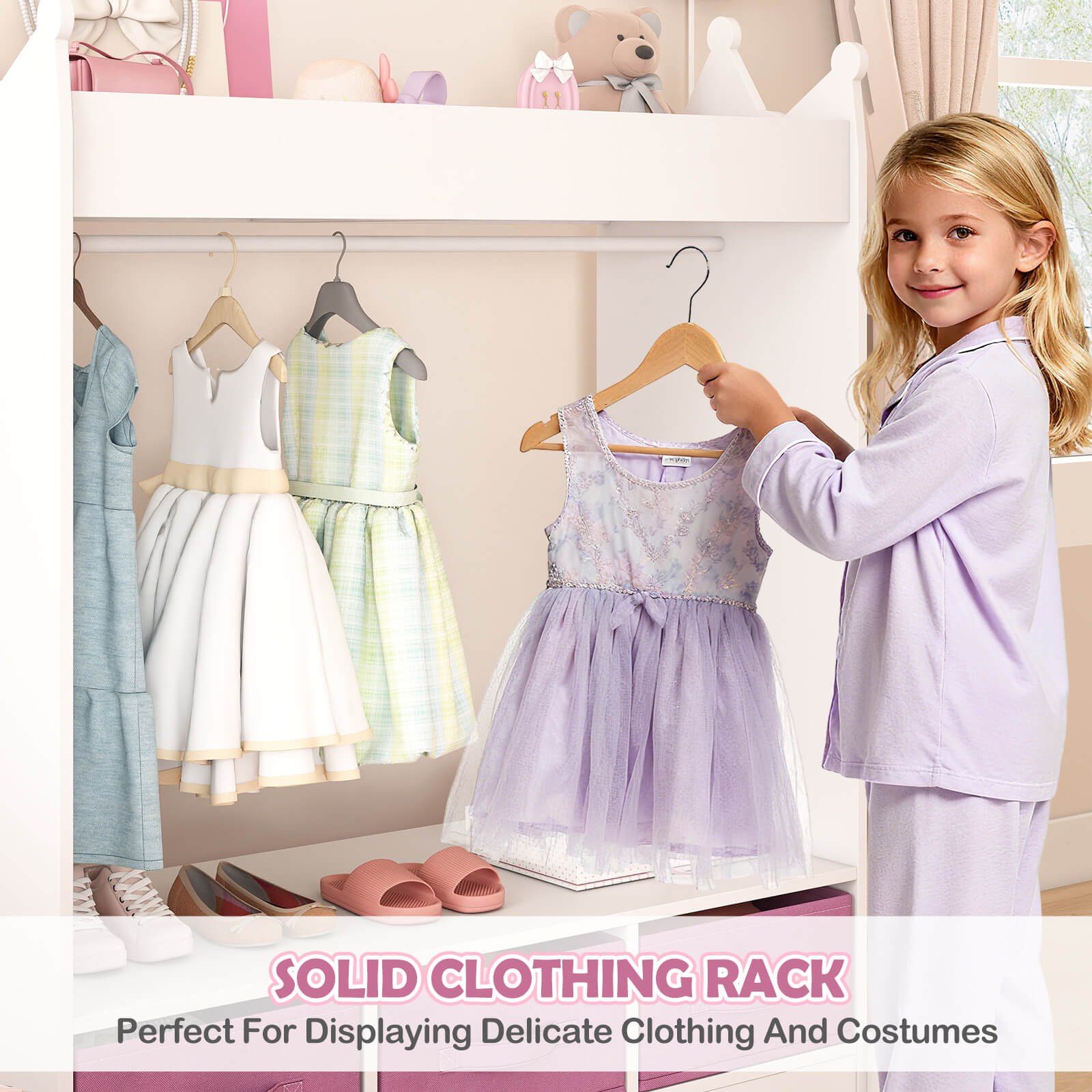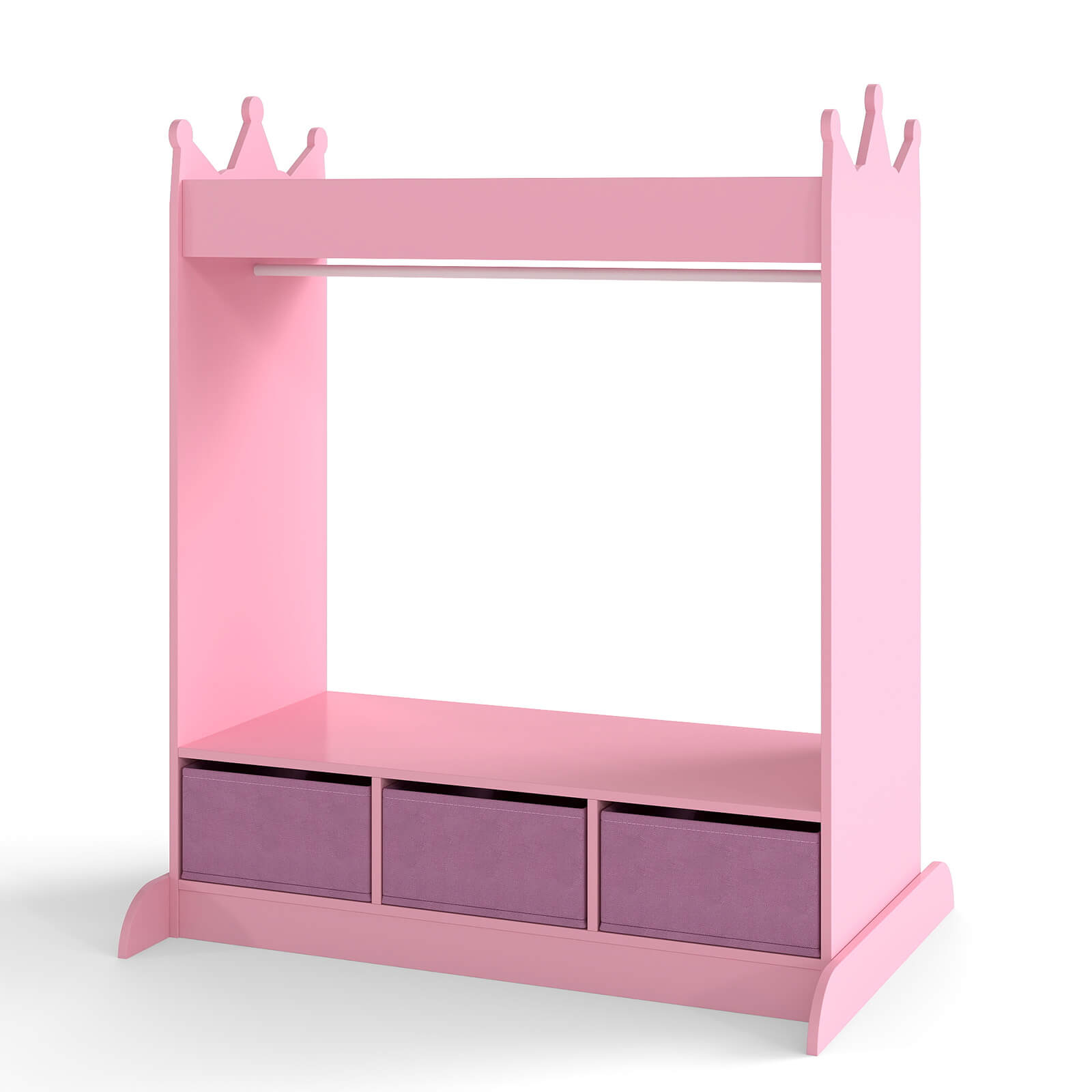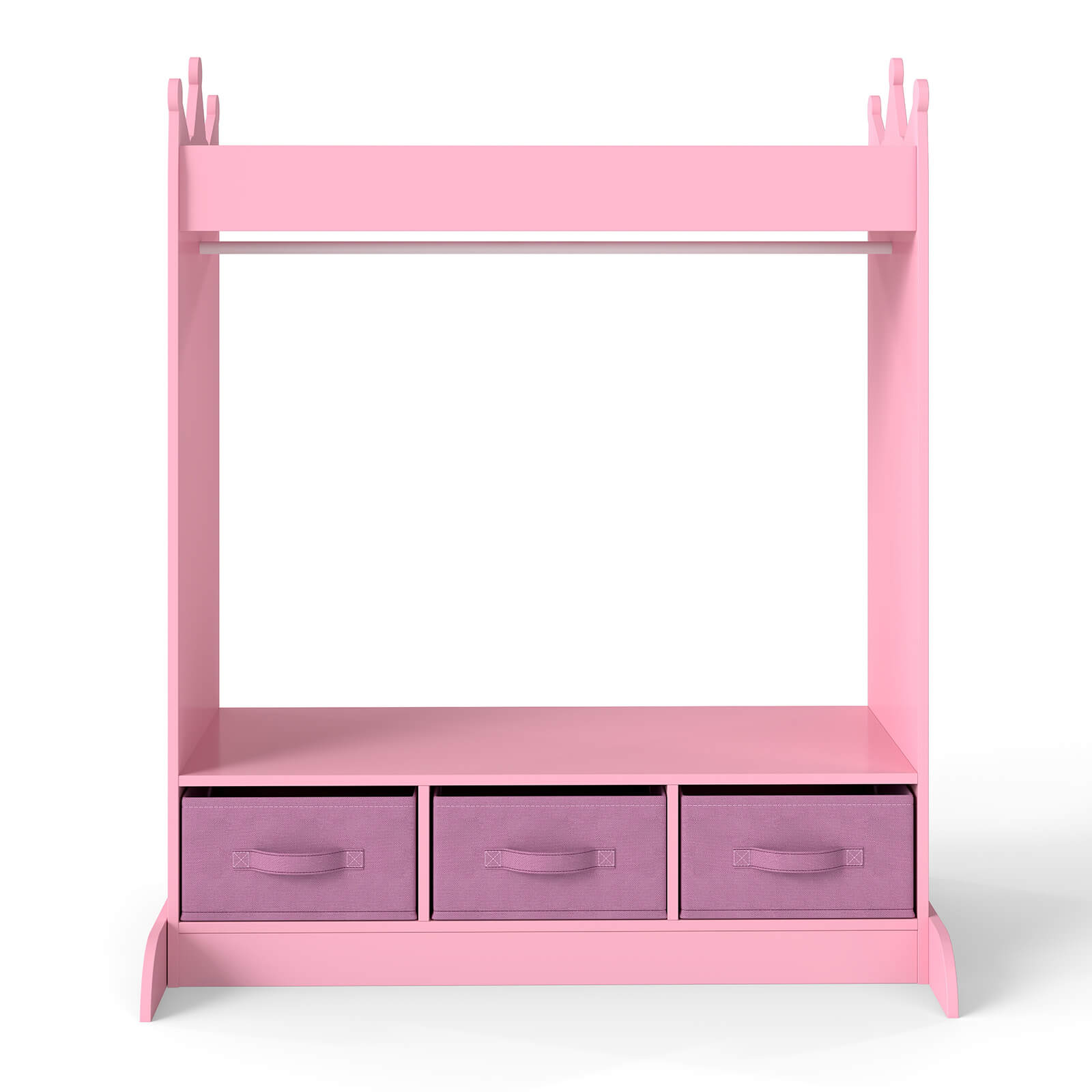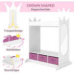 - SAFE MATERIAL&LOVELY DESIGN - JOYLDIAS dress-up storage is made of high-quality MDF which is safe and durable. The unique design with a crown-shaped top adds a touch of elegance and whimsy to any child's bedroom. This open-hanging kid wardrobe closet is excellent for pretend dress-up, costume change or just everyday preparation to get the day started.