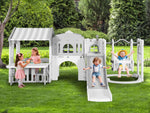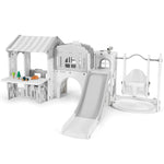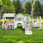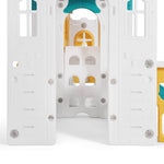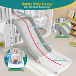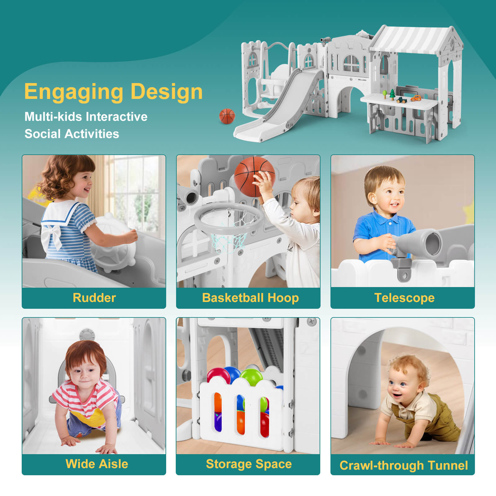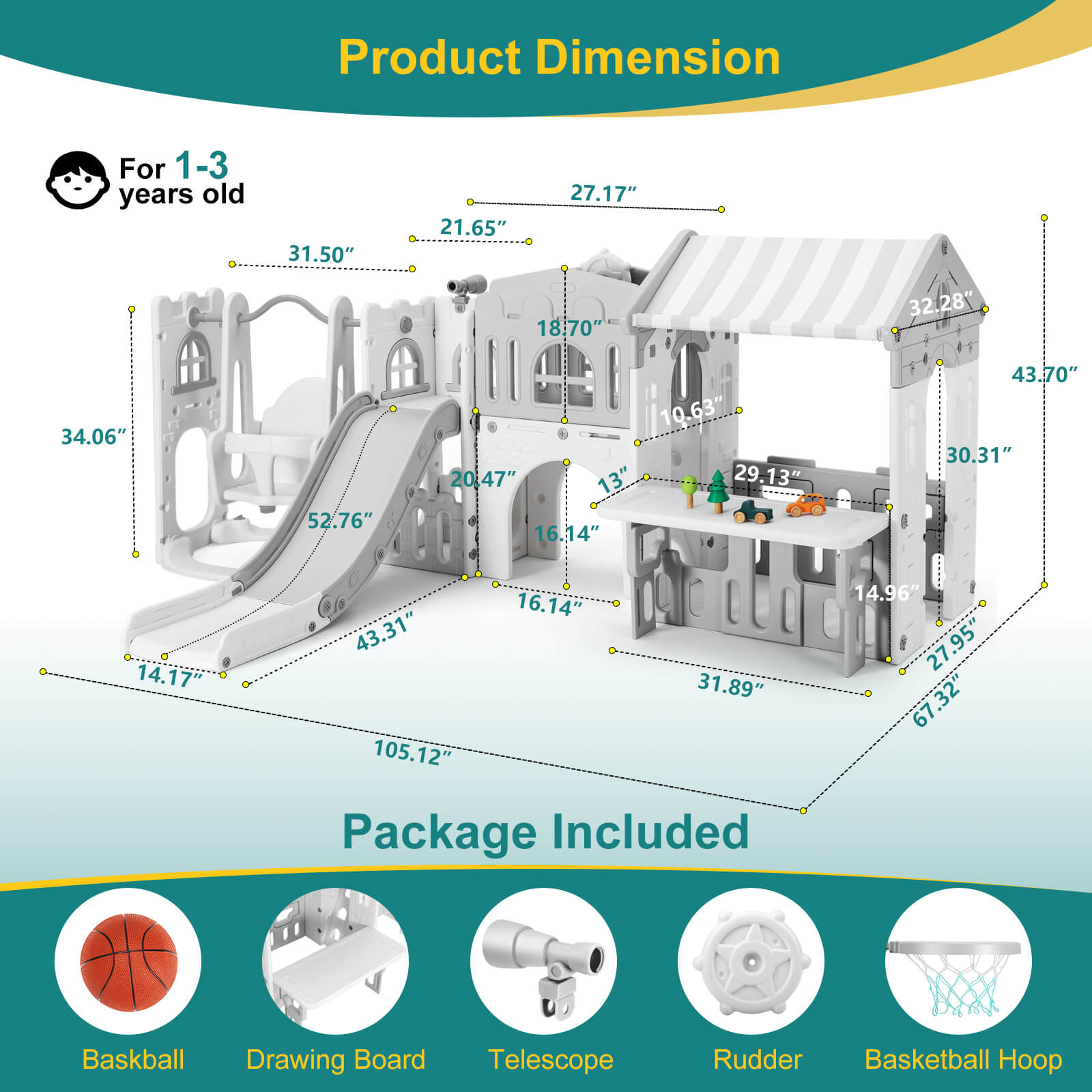 • 【10-in-1 Multifunctional Playset】JOYLDIAS 10 in 1 toddler slide set has 10 activity areas, including Playhouse, Swing, basketball hoop, storage space and widened climbing ladder, crawl-through tunnel and telescope. It can exercise children's muscle strength, balance and coordination and make the reaction more agile. And add baby's fun during the play