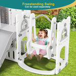 #40123 10 in 1 Toddler Slide, Freestanding Kid Climber Slide Playset, Toddler Playhouse with Slide and Swing, Basketball Hoop, Telescope, Indoor Outdoor Backyard Playground Toy for Toddlers Age 1-3+