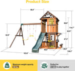- Windproof, Rainproof & Smooth Surface Design:This outdoor play swing set is made of high-quality wood boards and coated with waterproof varnish that can withstand long-term outdoor conditions and various natural factors. Its smoothly polished surface can avoid the occurrence of wood splinters or cracks, thus ensuring that it can be used outdoors for a long time and bring you all-year-round joy in your backyard