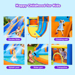 #1201 Inflatable Water Slide Bounce House,Giant Water Park, Double Slide Bouncer Castle w/Splash Pool, Jump Area, Climbing Wall, 550W Air Blower for Kids Backyard Indoor Outdoor Use,Free Water Gun