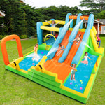 #1204 Inflatable Water Slide, Giant Water Park Bounce House with 2 Long Slides, Splash Pool,Trampoline, Climbing Wall, Ring Toss Game, 550W Air Blower for Kids Backyard Garden Indoor Outdoor Use