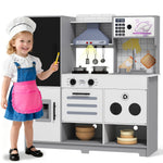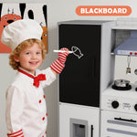 - Ultra-Extensive Design - The wooden play kitchen set for kids comes with a water dispenser, microwave, oven, sink, little chalkboard and hooks, all of the design can improve children's hands-on skills. Provides hours of educational entertainment fun