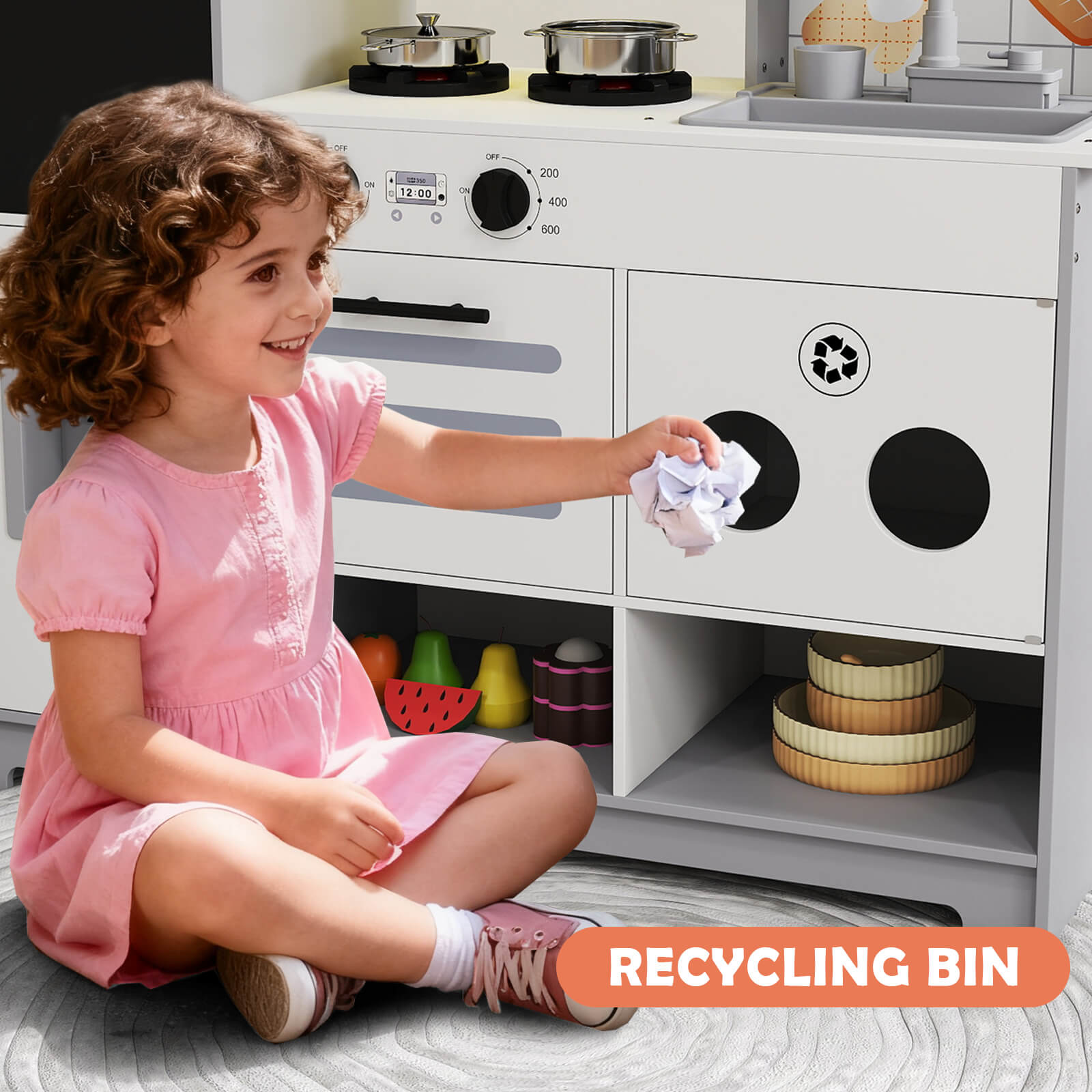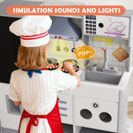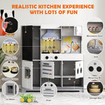 Kids Play Kitchen Set, Pretend Wooden Kid Kitchen Playset Toy Kitchen w/Sound and Light, Oven, Ice Maker, Blackboard & Recycling Bin, Toddler Kitchen for Kids Ages 3+