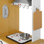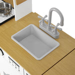 Kid play kitchen is made of high-quality environmentally friendly MDF+PP material, non-toxic, BPA-free, with the highest safety and durability. This design not only ensures the safety and health of children, also can accompany their growth for a long time.