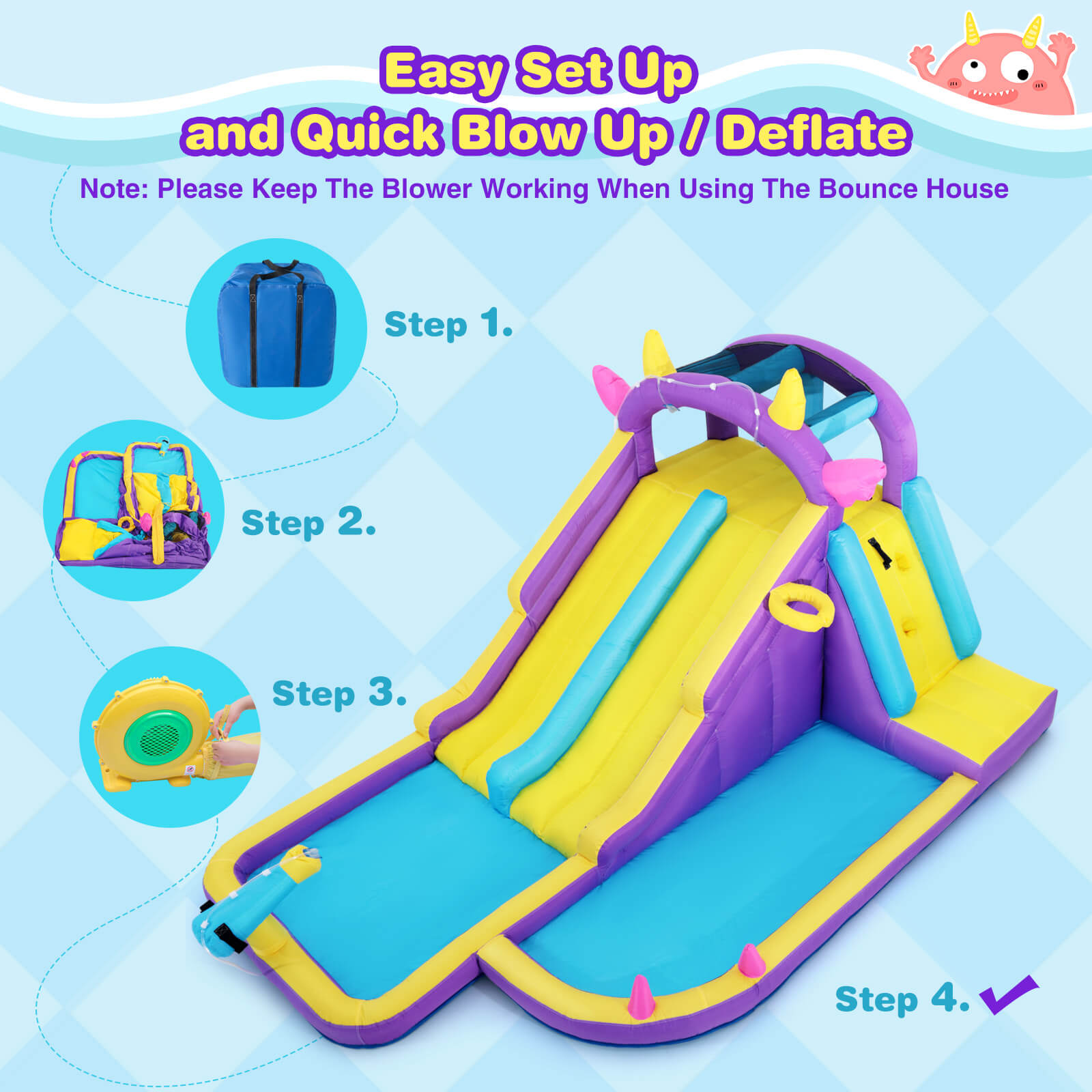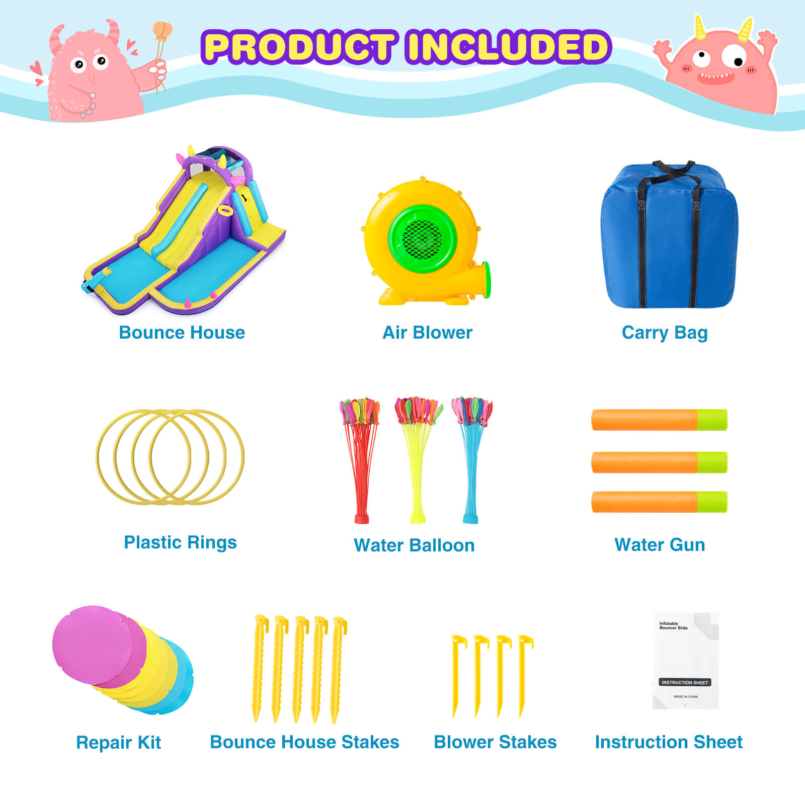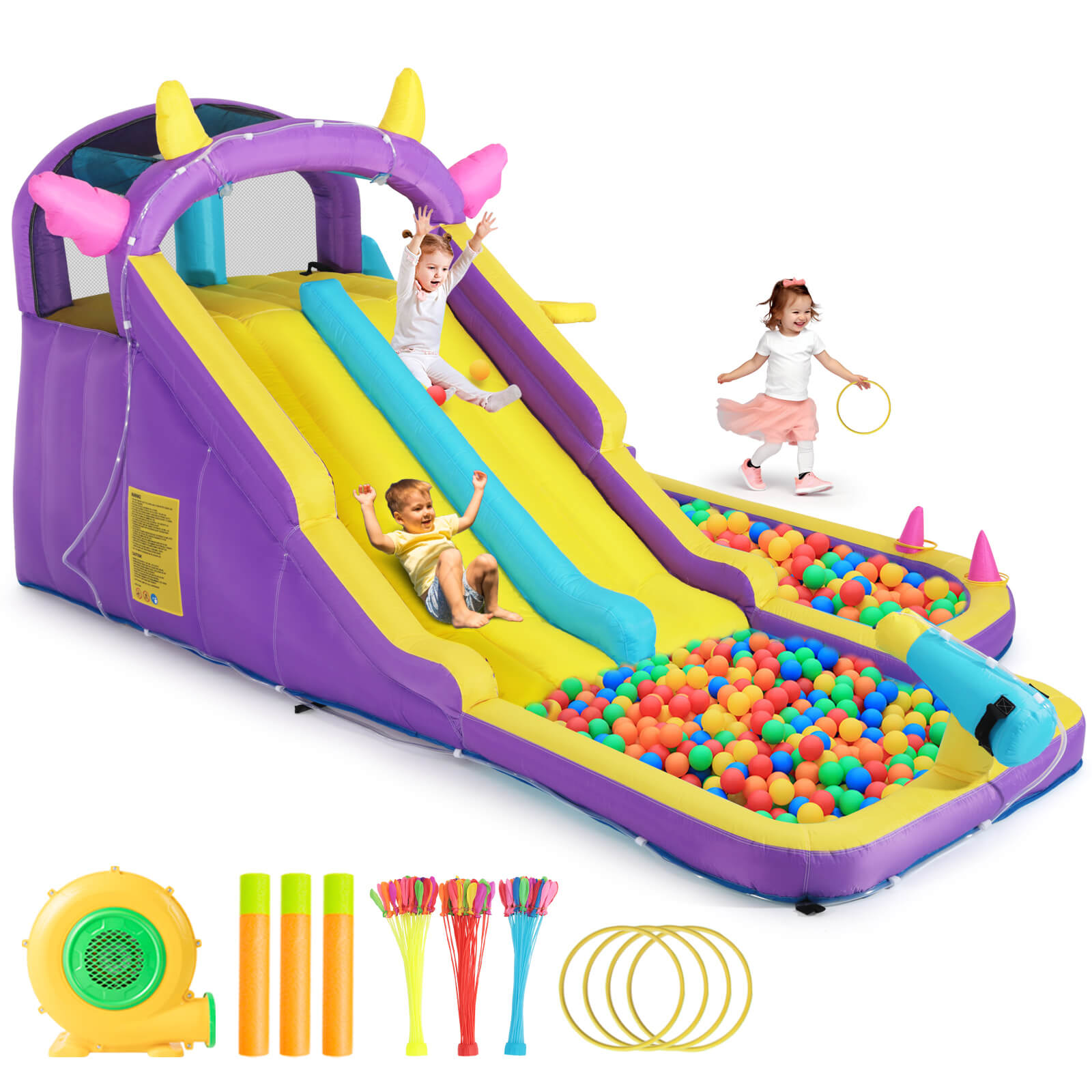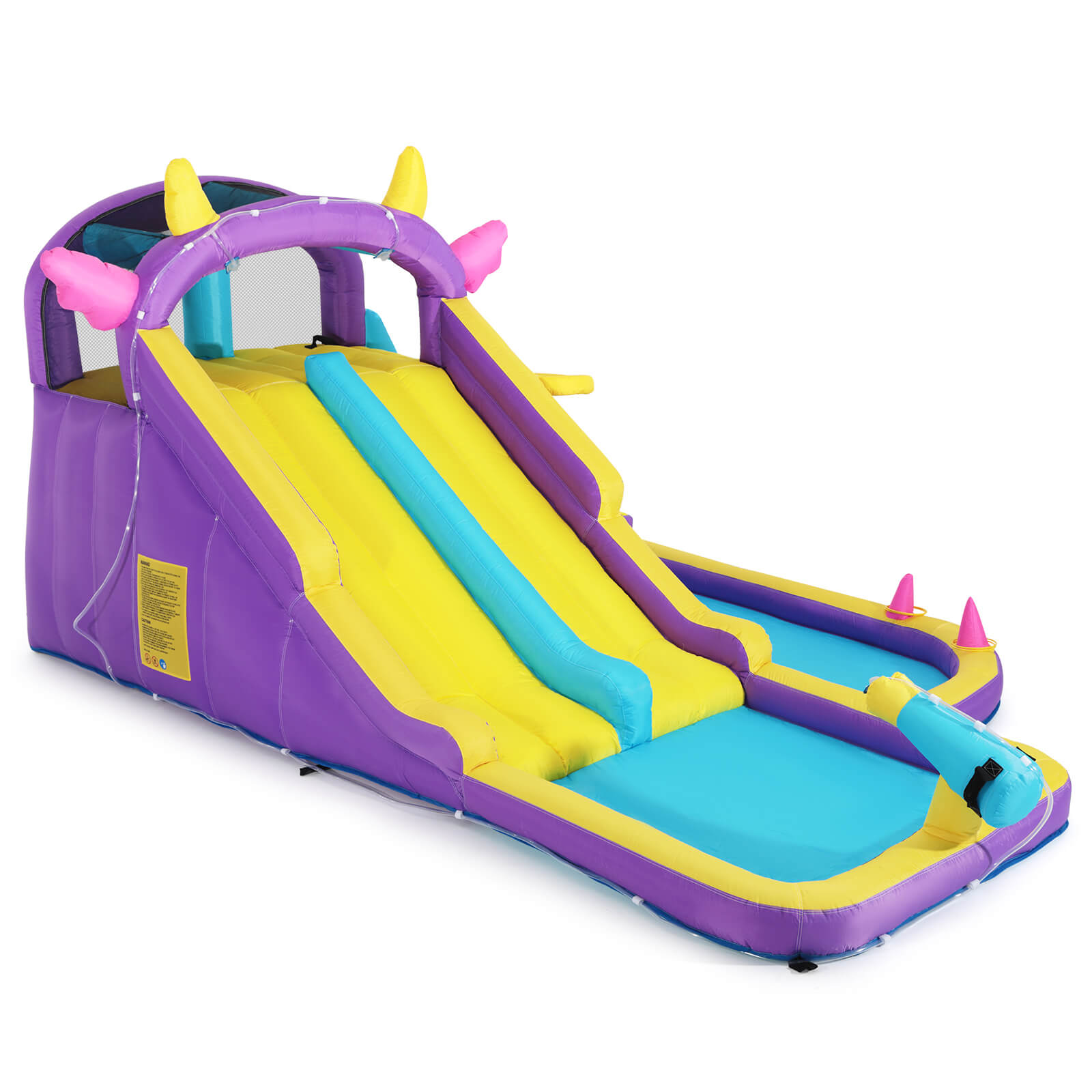 Home>Inflatable Water Slide,Water Park Bounce House,Slide Bouncer Castle Playhouse w/Splash Pool, Climbing Wall, Ring Toss Game for Kids Birthday Party Indoor Outdoor Fun, 480W Air Blower