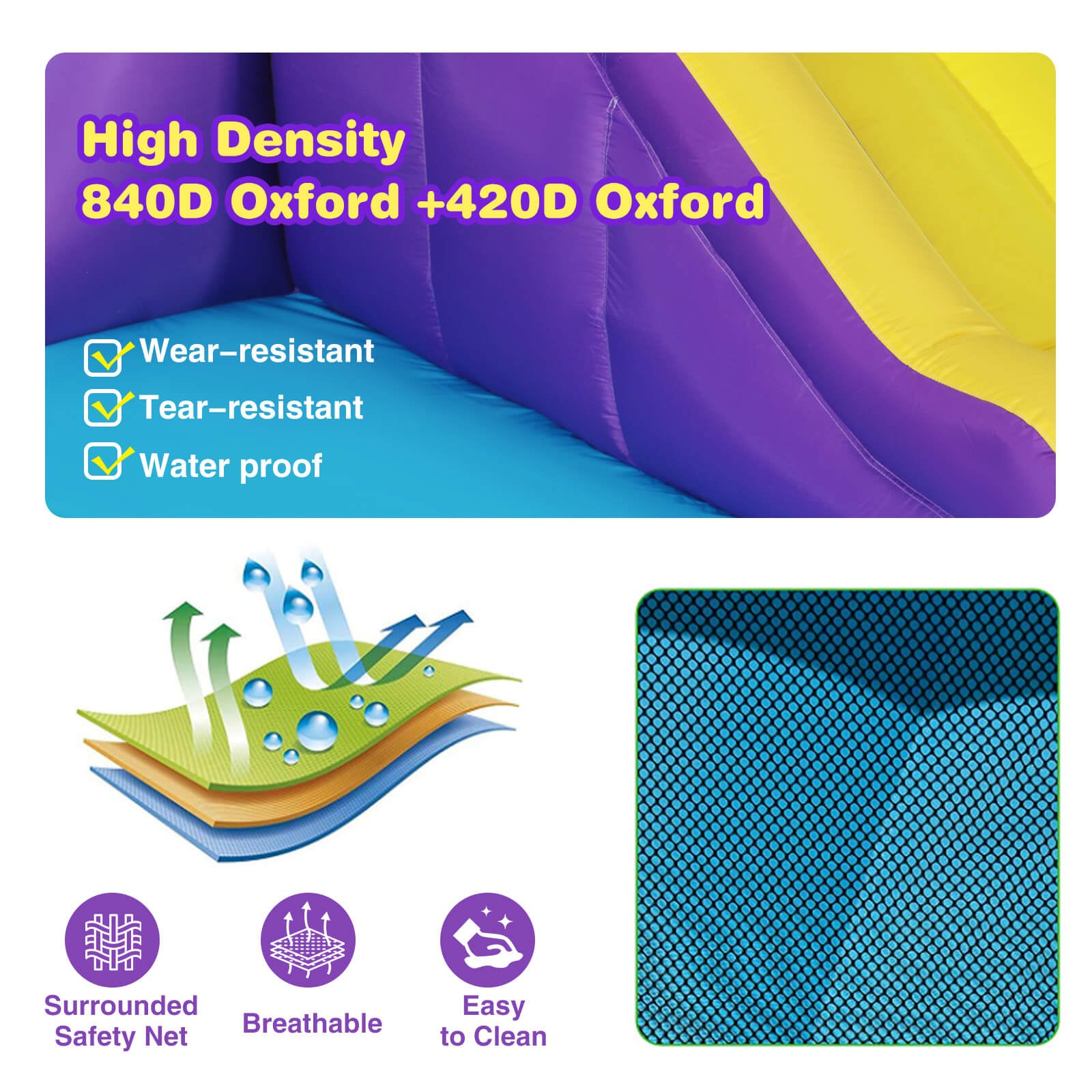 Inflatable Water Slide,Water Park Bounce House,Slide Bouncer Castle Playhouse w/Splash Pool, Climbing Wall, Ring Toss Game for Kids Birthday Party Indoor Outdoor Fun, 480W Air Blower